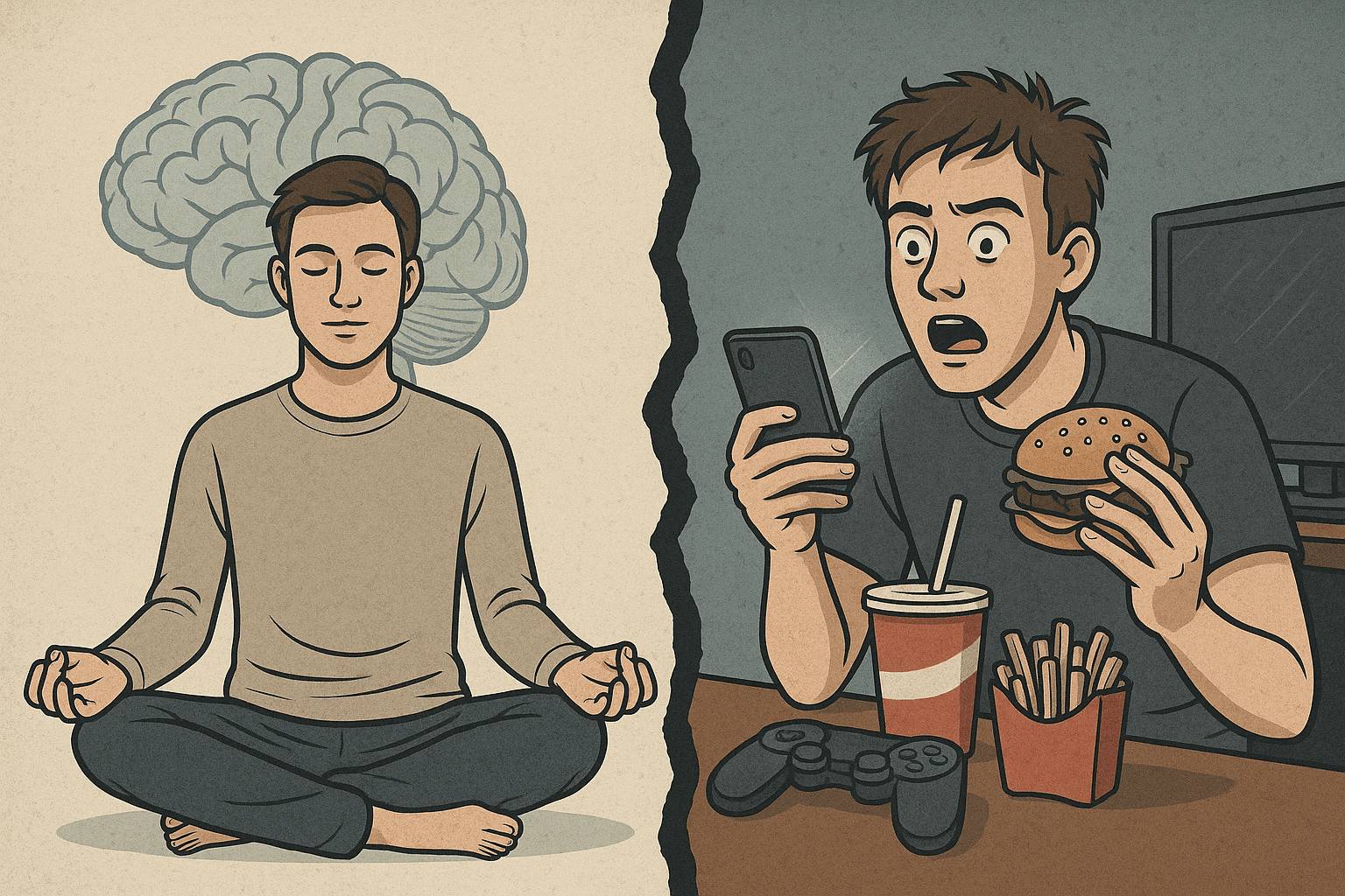 O problema é que vivemos cercados de dopamina barata. Redes sociais, pornografia, junk food, videogames, notificacões, streaming, tudo foi projetado para hackear nosso cérebro e mantê-lo preso em um ciclo de gratificação instantânea. Resultado? Perda de foco, ansiedade, depressão, baixa produtividade e infelicidade crônica.